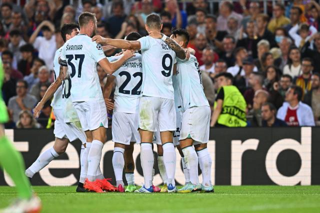 小因扎吉的球员们明白过来:眼前这支巴萨不过是个脆弱的纸老虎。哲科的弯弓搭箭被加维挡出底线,什克里尼亚尔的头槌被特尔施特根神勇化解,邓弗里斯在禁区内短暂地思考了人生,但进球至此只是时间问题。第63分钟,恰尔汗奥卢从右侧送出精准长传,劳塔罗停球后顺势晃开埃里克·加西亚,随后用右脚射出炮弹。左门柱,右门柱,时间短暂地凝固,弹球机里的弹珠要飞向何处?皮球最终入网,劳塔罗开始庆祝,黑暗的隧道已经被甩在身后,远处是欧冠淘汰赛的欢迎横幅。